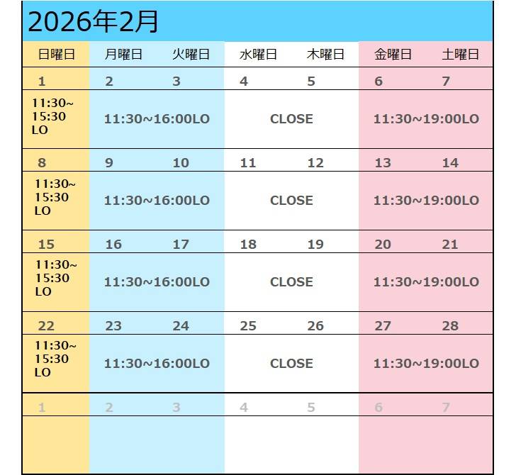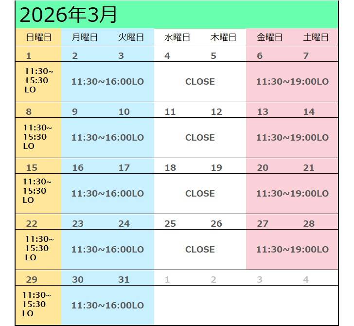 ★金曜、土曜のランチタイムのラストオーダーは15:30 です。