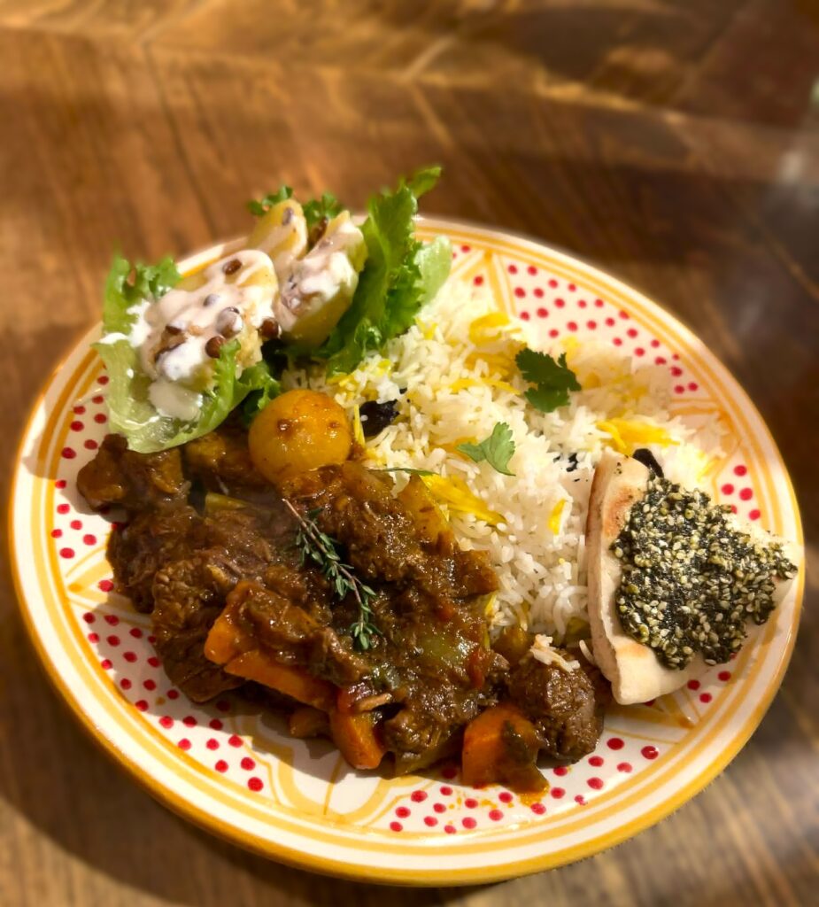今週末のスペシャル「アラブなプレート」残り5皿です。写真はHぶちょー、ありがとうございます!ペコロス、ニンジン、もちろん牛肉がゴロゴロ入ったビーフシチュウがメインです。今回もちょっと大盤振る舞い気味の一皿、1800円です。召し上がりたい方、ご予約がおススメです(無くなり次第終了)。