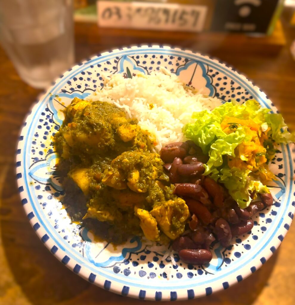 今週末のスペシャル「フレンチ・カリビアン・プレート」残り3皿です。画像はHぶちょー撮。ありがとうございます。コロンボはマルティニークやグアドループのカレーといった料理ですが、小葱、パセリ、タイムをたっぷり使うので、黄色と言うよりグリーンです。今回は、チキンとバナナのコロンボを作りました。雪のちらつく日曜日。まだの方はまず投票、そしてうっかり渋谷に来られたら、店内は熱帯のロス・バルバドスへお越しください