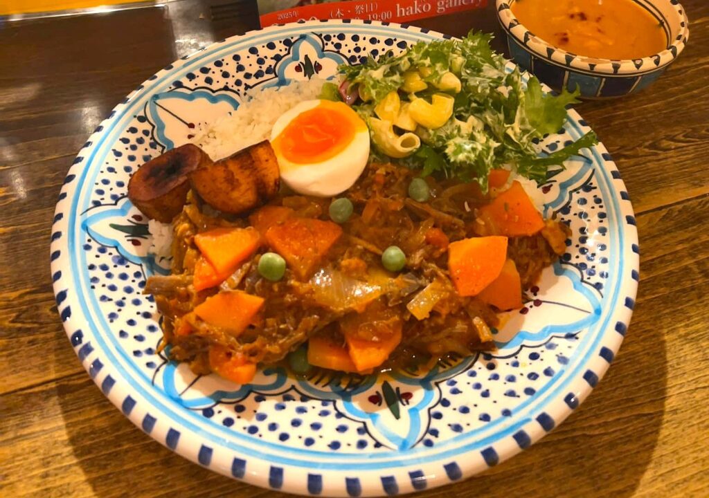 2026年4月23日 / news 4/25-26 土日はトーゴ料理 4月27日はトーゴの独立記念日(シエラレオネ、南アも同日です)。西アフリカ、ガーナとベナンに挟まれ、ブルキナ・ファソにも接したた細長い国、トーゴ。料理は周辺の国と似通ったものが多いです。 【Menu】*ヘッダー画像は実際のプレートと異なります。Gboma Dessi:青菜を中心とした野菜と牛肉の煮込みGawou Fotor:ガリ(発酵キャッサバ粉)をトマトベースの野菜ソースと合せたものに、黒目豆のフライをちぎって混ぜたものAlloco:調理用バナナを揚げたものRice & Salad:ご飯とサラダ 【Price】上記セットで ¥1900 【Reservation】限定数、無くなり次第終了です。召上りたい方は、メッセージください。テイクアウトもできます!